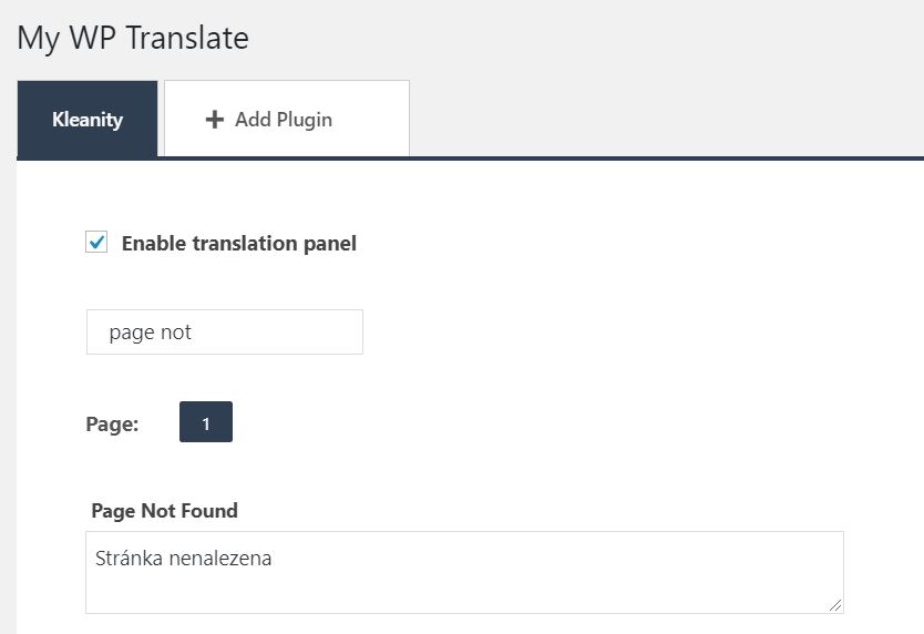 V administrácii sa v ľavom menu zobrazí položka My WP Translate, na ktorú môžete kliknúť. Tým si zobrazíte obrazovku so záložkami podľa nainštalovaných šablón a s rolovacím menu, z ktorého môžete kliknutím pridať jednotlivé nainštalované pluginy.
